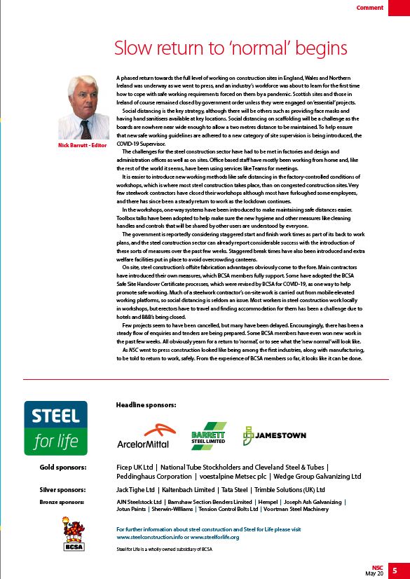 As NSC went to press construction looked like being among the first industries, along with manufacturing,