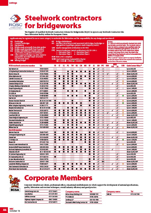 BCSA steelwork contractor member Tel FB CF SG PG TW BA CM MB RF AS QM FPC BIM NHSS SCM Guide Contract Value (1)