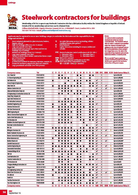 Membership of BCSA is open to any Steelwork Contractor who has a fabrication facility within the United Kingdom or Republic of Ireland.